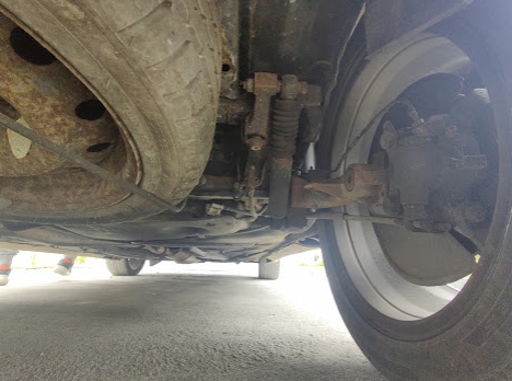 Par contre en dessous c'est moins joli mais ça a l'air d'être de surface, il lui faudra un bon traitement antirouille de tous le châssis.